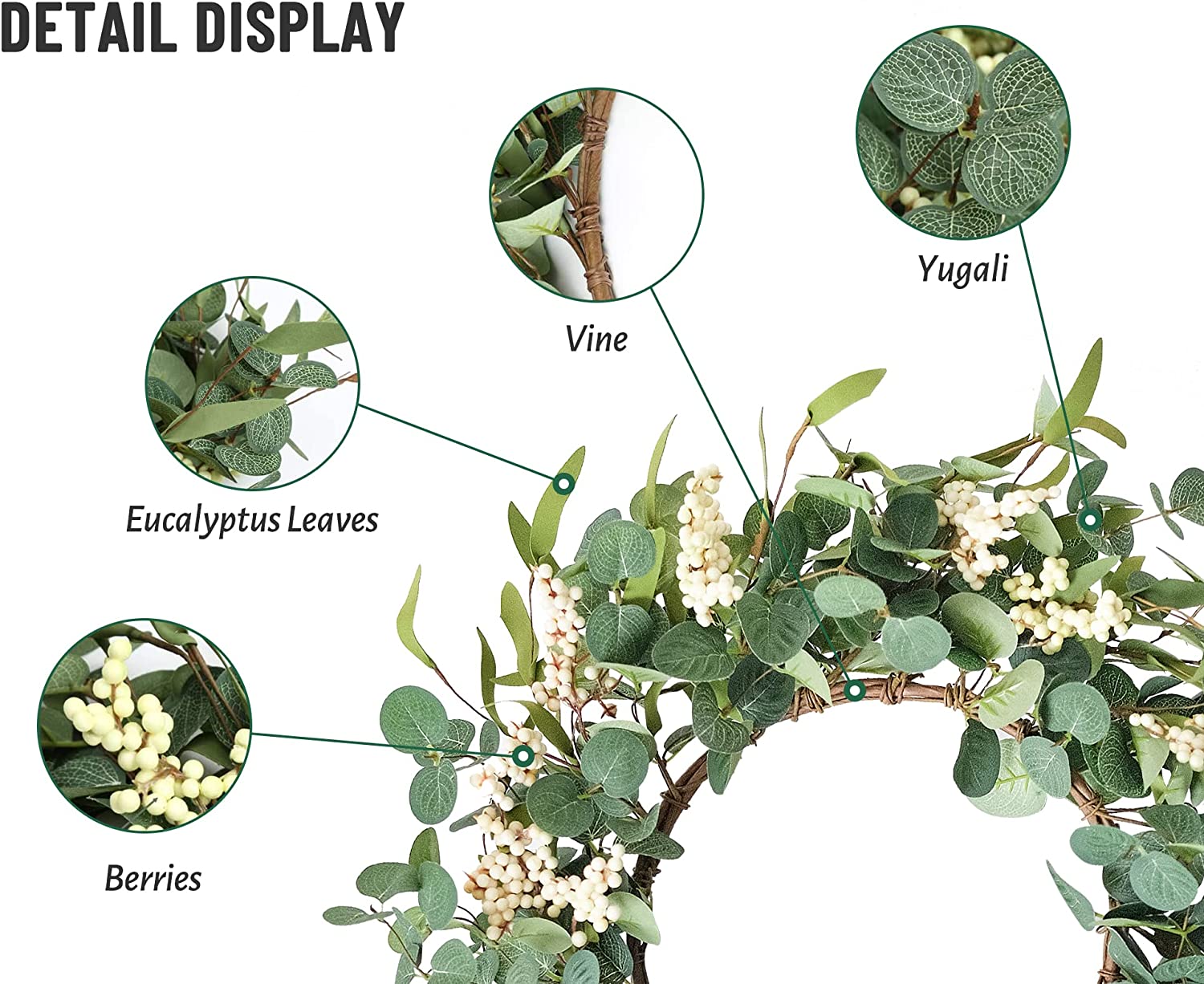 Pinkpum Wreaths for Front Door 20'' Eucalyptus Wreath, Spring Summer Green Wreath, Home Porch Farmhouse Decor,Fall Wreath Harvest Thanksgiving Festival Decorations Indoor Outdoor