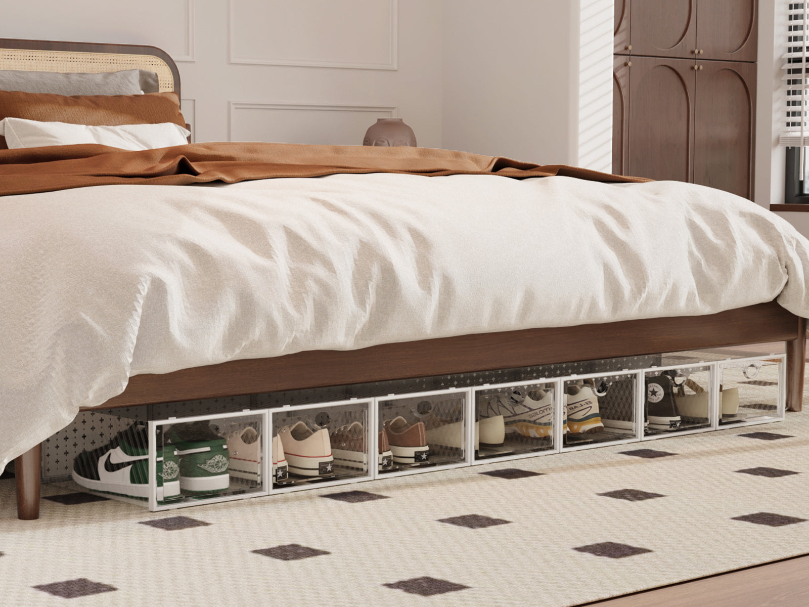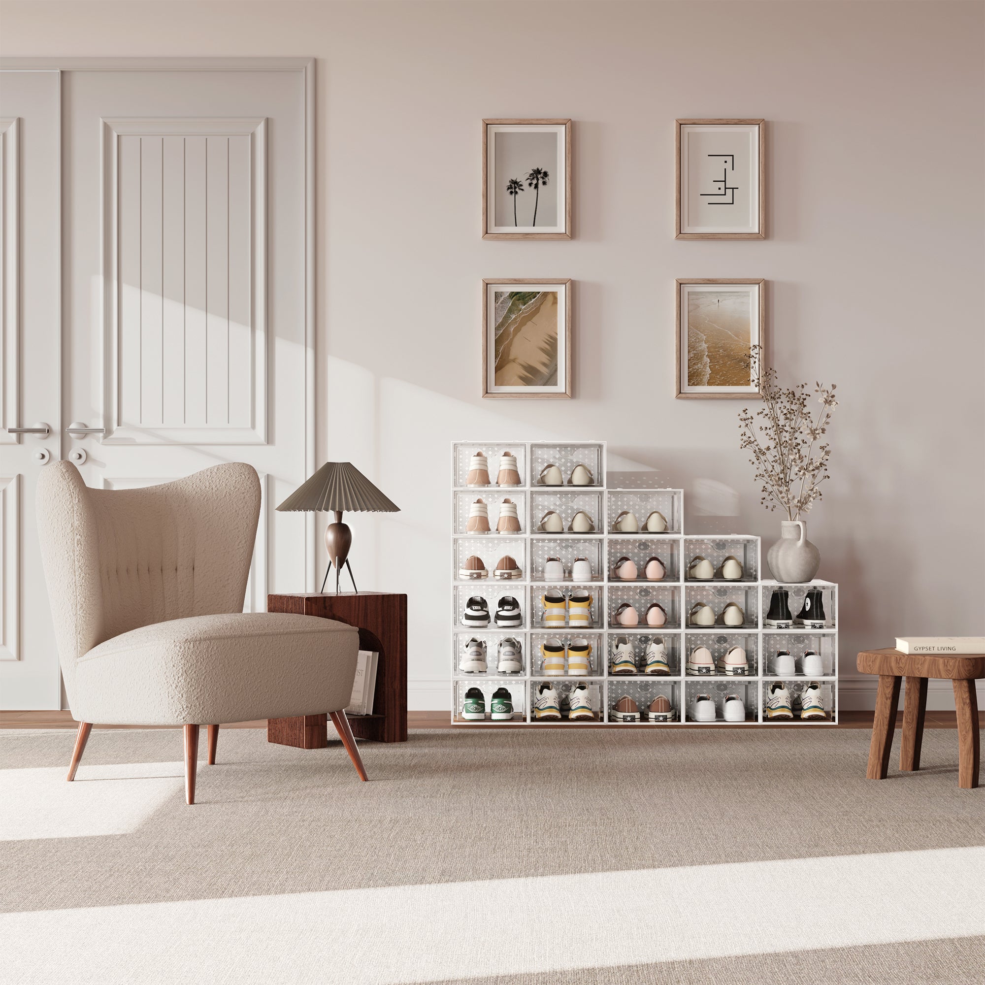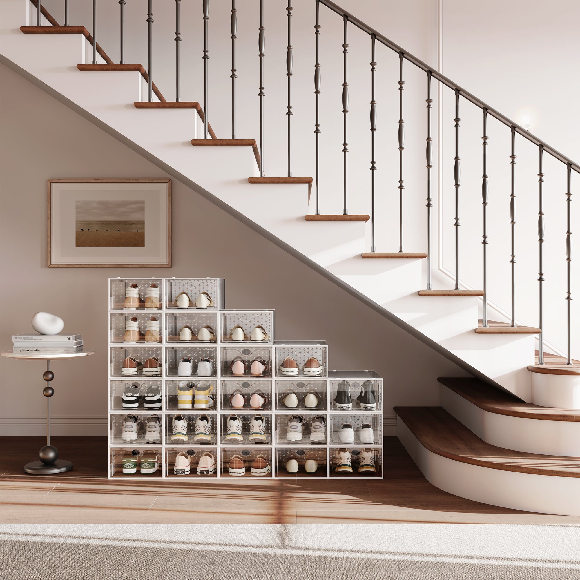 Pinkpum 12 Pack Shoe Storage Boxes, Shoe Organizer for Closet Clear, Shoe Boxes Clear Plastic Stackable, Folable Storage Bins with Lids, 12 Pack Shoe Sneaker Containers Bins Holders