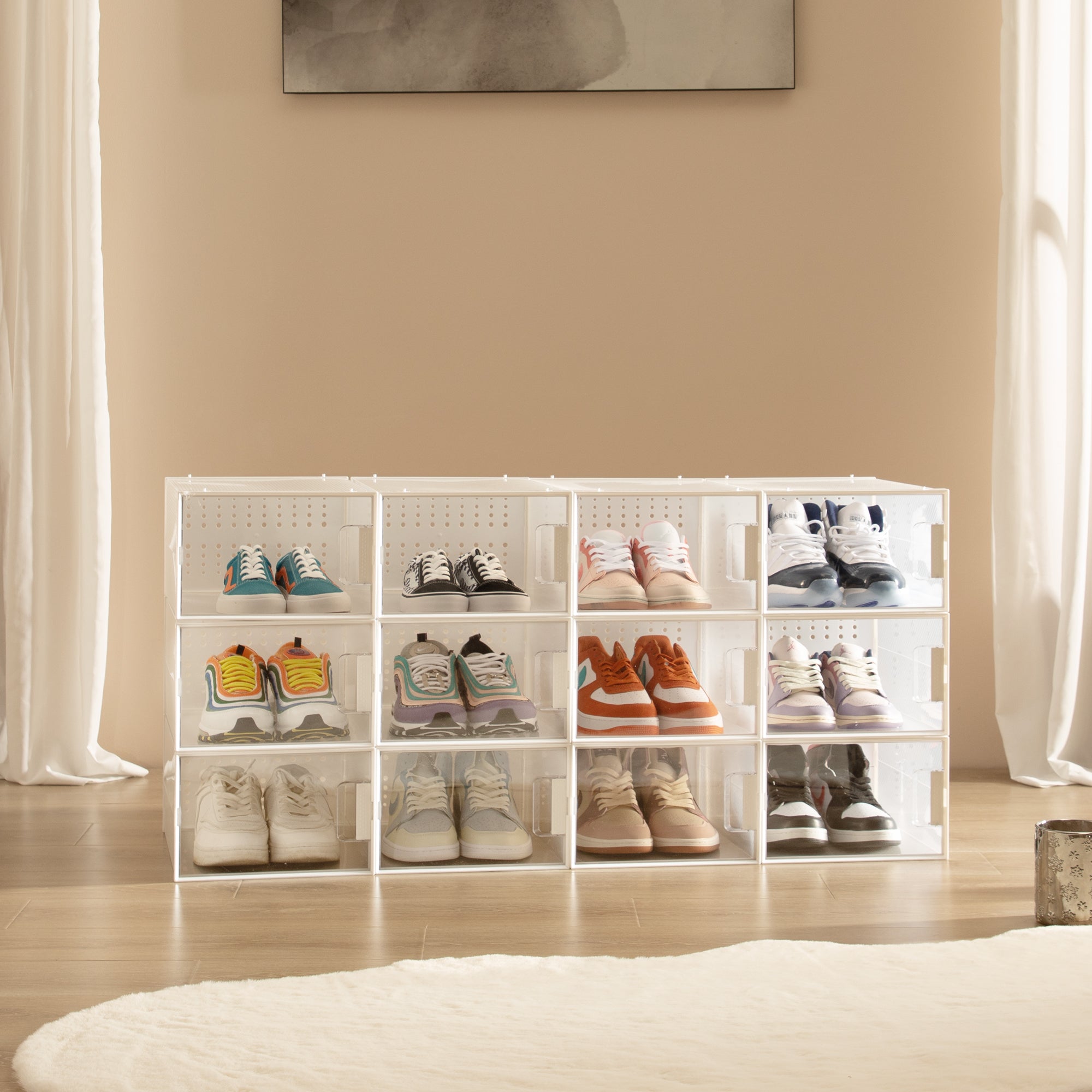 Pinkpum Extra Large Shoe Organizer Storage Boxes for Closet, Fit for Size 14, Clear Plastic Stackable Sneaker Storage Containers Bins with Lids, Clear Shoe Display Case Containers, 12 Pack