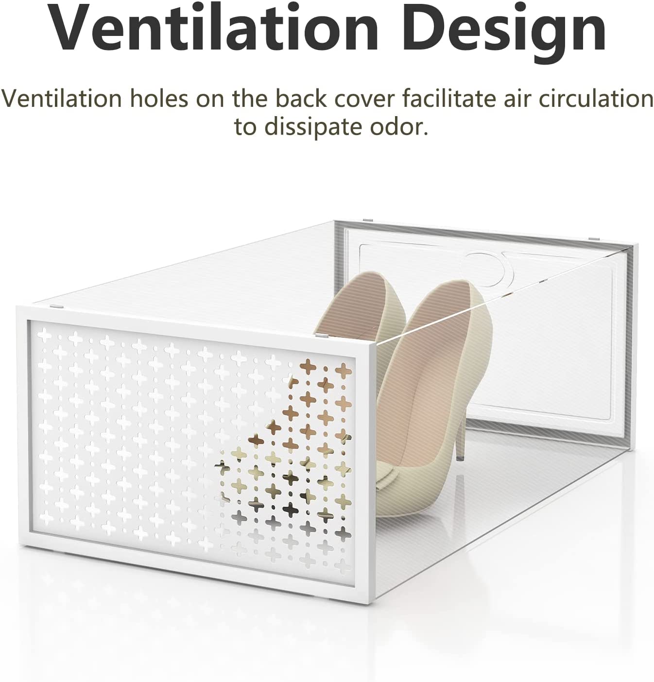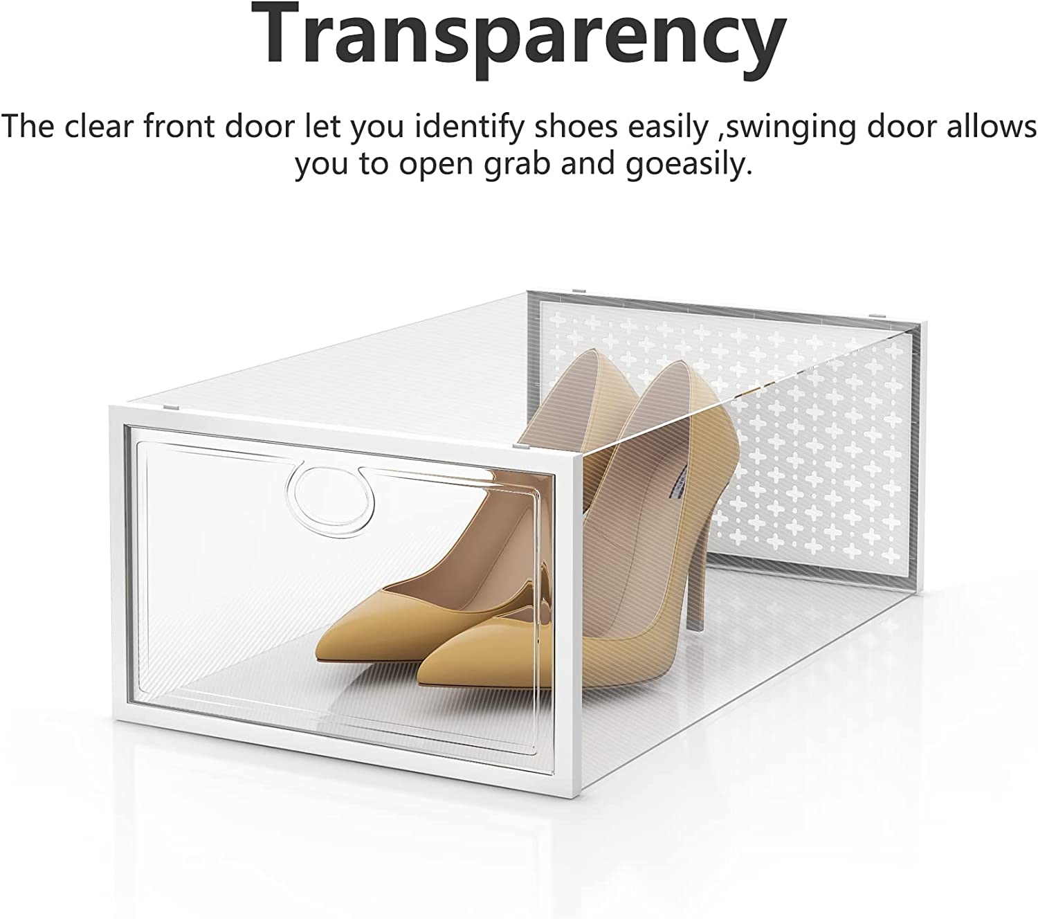PINKPUM 12 Pack Shoe Storage Boxes, Clear Stackable Shoe Containers for Closet, Sneaker Storage Fit for Size 11 (Large)